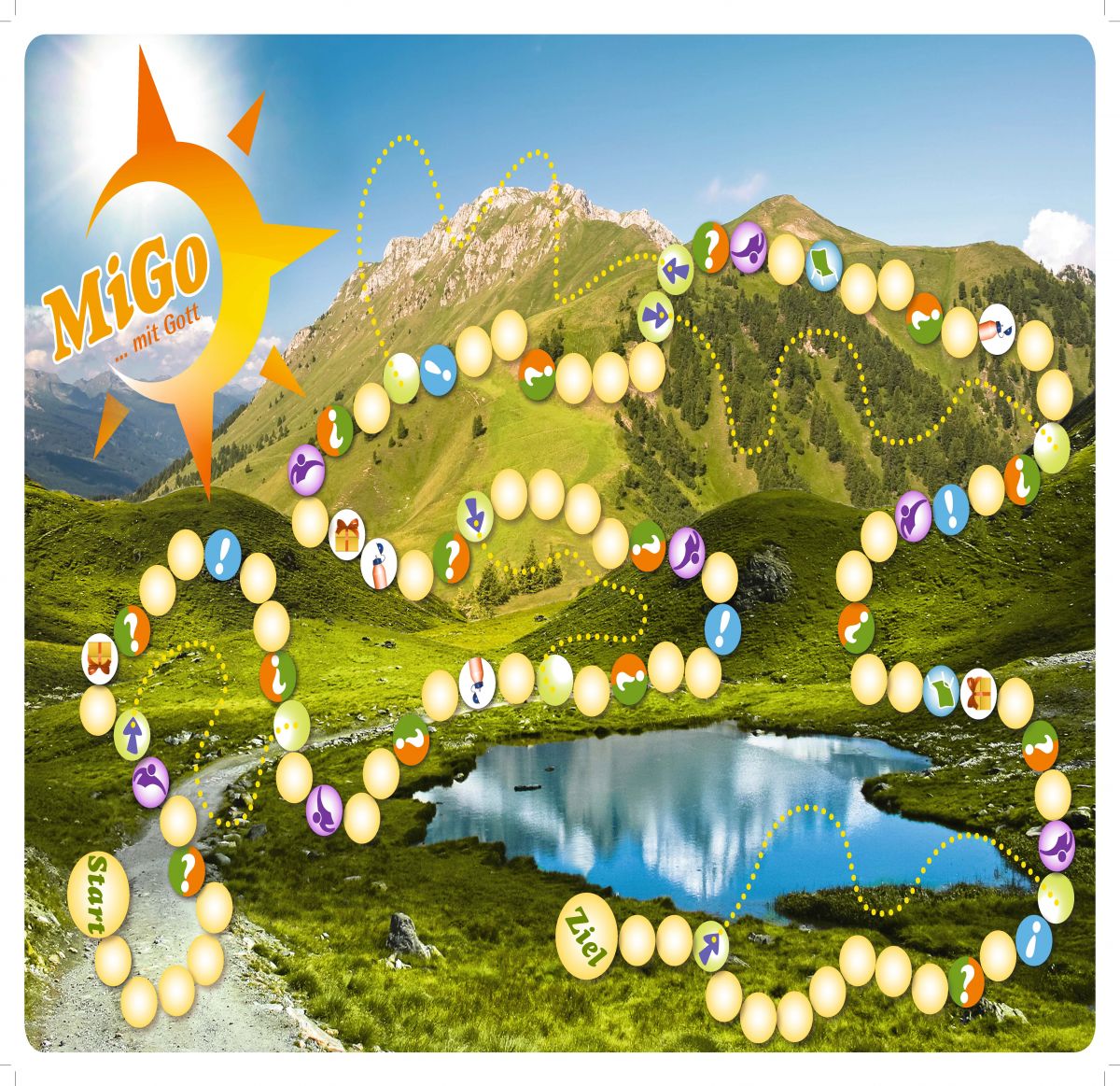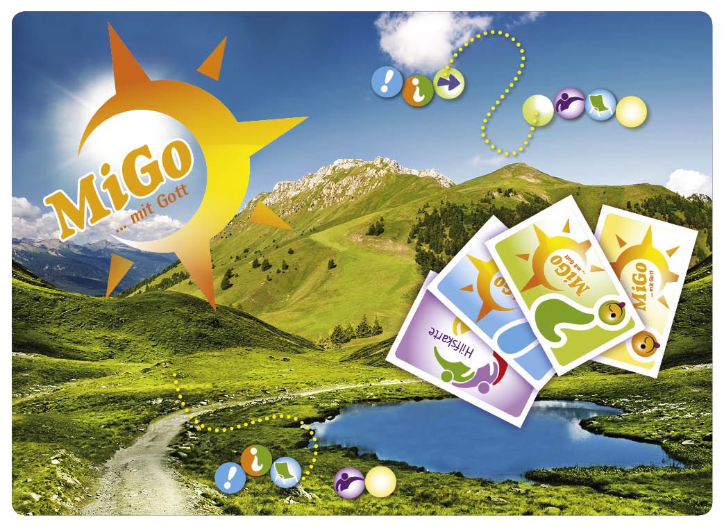 MiGo – Mit Gott durch‘s Jahr und durch‘s Leben mit Hindernissen, Fragen, Umwegen, Abkürzungen und Hilfen. So ungefähr ist der Verlauf des Spiels MiGo. Natürlich geht es darum als Erste, als Erster im Zielfeld anzukommen. Aber der Weg dorthin ist vielfältig und macht Spaß. Dazu tragen die Fragekarten bei, die in zwei Schwierigkeitsstufen vorhanden sind. Sie sind so verfasst, dass es Antwortmöglichkeiten gibt, die Kinder etwas aufzählen lassen oder wo sie erzählen können. So sind die Chancen groß, dass die Fragen auch richtig beantwortet werden können. Dafür dürfen sie mit ihrer Spielfigur 7 Felder weiterrücken. Also mehr, als man mit dem Würfel erreichen kann.