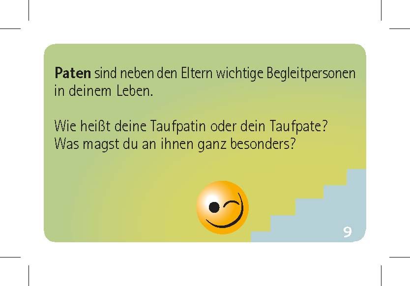 „MIGO … Mit Gott“ vermittelt die Botschaft egal wer du bist, was du bist, wie du bist und wohin du gehst: Gott ist mit dir. Das Spiel will eine Möglichkeit schaffen, den Glauben zur Sprache zu bringen, die Freude am Glauben erlebbar zu machen und zu vertiefen. Die Themenbereiche setzen sich mit dem christlichen Glauben, seinen Symbolen, Sakramenten und Bräuchen durch das Kirchenjahr auseinander. Auch eine Verbindung zu anderen Religionen wurde hergestellt. Auch der Palmsonntag kommt zur Sprache. Das Spiel ist im Büro der kfb in Bozen erhältlich und könnte ein sinnvolles Patengeschenk zu Allerheiligen sein sein.