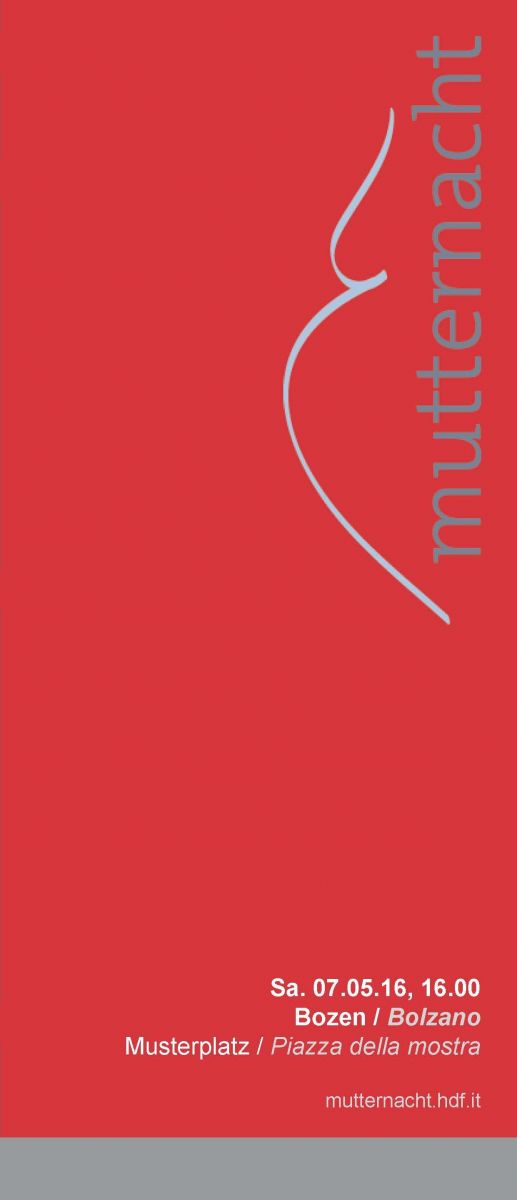Die Mutternacht findet in Bozen am 7. Mai ab 16 bis 18 Uhr auf dem Musterplatz statt. Mit dem Thema "Jugendschwangerschaft - ein neues Leben beginnt" soll auf die speziellen Schwierigkeiten bei einer Teenieschwangerschaft aufmerksam gemacht und auf geeignete Anlaufstellen und Unterstützungsangebote für betroffene Jugendliche und deren Eltern hingewiesen werden.