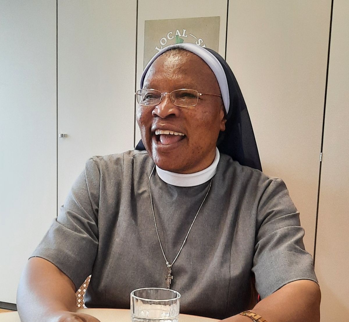 Sr. Hedwig aus Kamerun zu Besuch im Büro der kfb