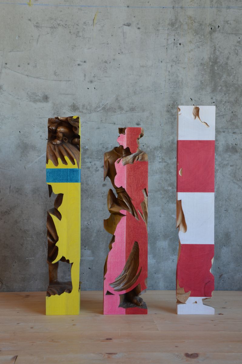 Zweitplazierter ist Hubert Kostner mit einem Holzfiguren-Konzept und Dritte ist Mirijam Heiler mit einer Interpretation von Kirchenfenstern.