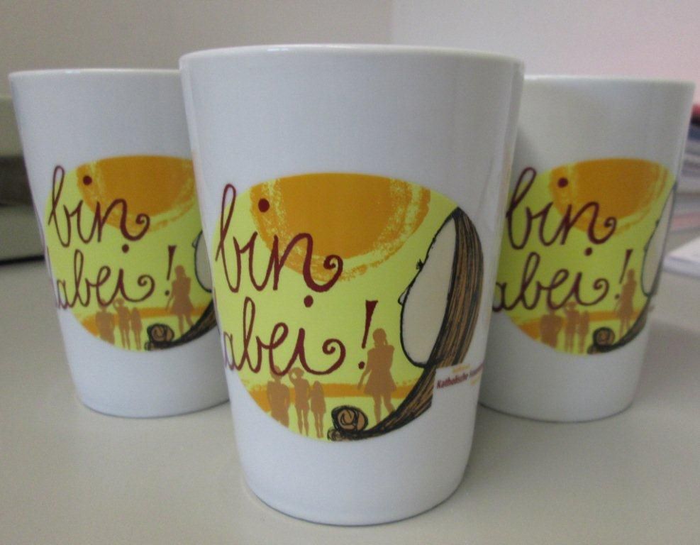 kfb-Tasse mit dem Motiv des Frauenfestes "I bin dabei"